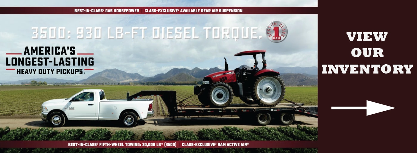 Here at Deveny Chrysler Jeep Dodge Ram, we recognize that farmers are the backbone of America. Farming is more than an occupation - it's a way of life. It's our duty and privilege to provide our local farmers with VIP service, the latest offers and incentives, and the tools they need to getthe job done.